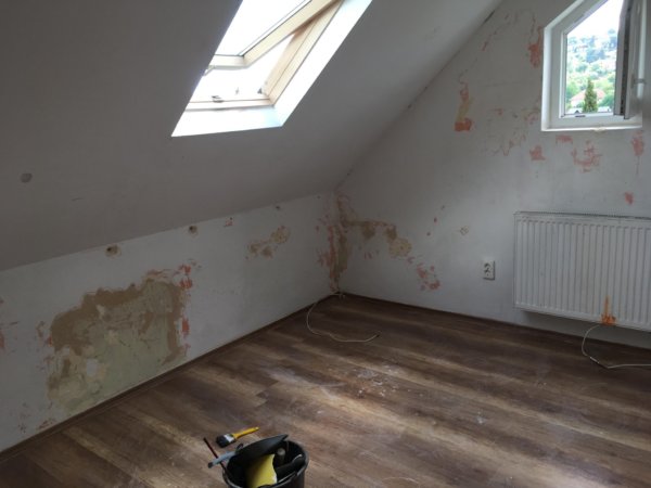 Judit: A falak lekaparásában és az első réteg glettelésében anyukám párja segített, megmutatta, hogyan kell csinálni, majd ezután már önállóan végeztem a további munkálatokat. Egyedül kevertem be a színt, gletteltem még két réteget, csiszoltam és festettem.