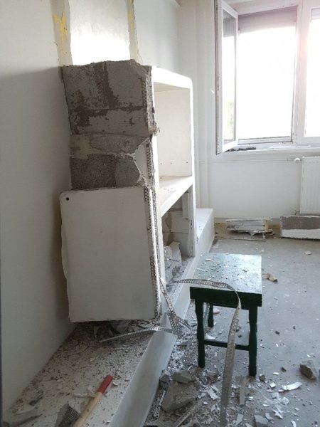 Júlia: Miután tavaly Szent Iván éjszakáján egy csőtörés nyomán kiömlött víz letarolta a lakásunkat és a bútorok nagy része megsemmisült, úgy döntöttünk, hogy alapjaiban megújítjuk az otthonunkat. Mivel a lakás elég forgalmas és poros helyen fekszik, a könyveket nagy szívfájdalommal, de zárt szekrényekbe száműztük. Ehhez szükség volt az előző ytong felépítmény bontására, és a csodaszép, de talán túl öregesnek érzett könyvespolc elajándékozására.