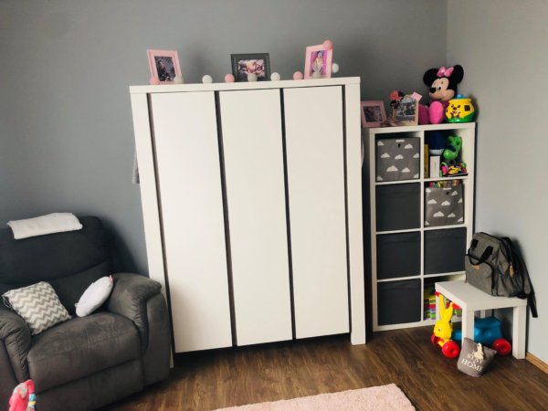 Krisztina: Köszönöm. Igen. Szombat este volt, amikor a tapétázással végzett a férjem, majd összeszerelte a bútorokat. Alig vártam, hogy végre kiéljem a lakberendező hajlamaim, és a sok kis zsákmány a helyére kerüljön, azonban beindultak a fájások vasárnap reggel. Nagy örömünkre megszületett Zoja. A kórházból hazaérve, a hálószobánkban egy kis bölcsőben aludt, így én két szoptatás között fejeztem be a szobáját. 🙂 De befejeztem, és nagyon szeretjük.